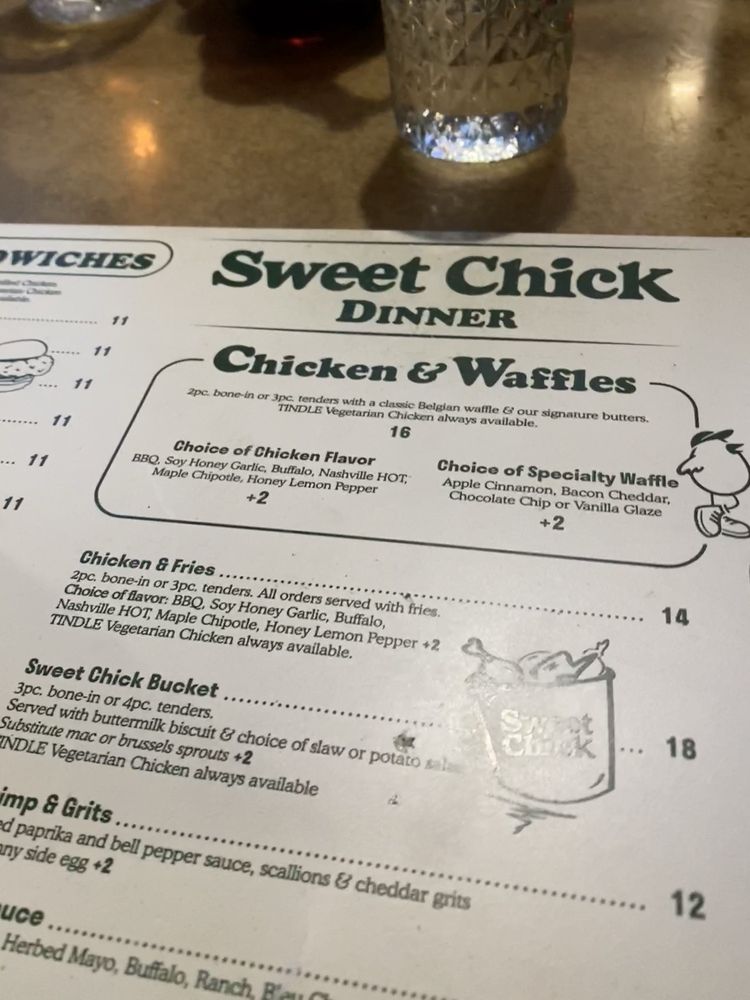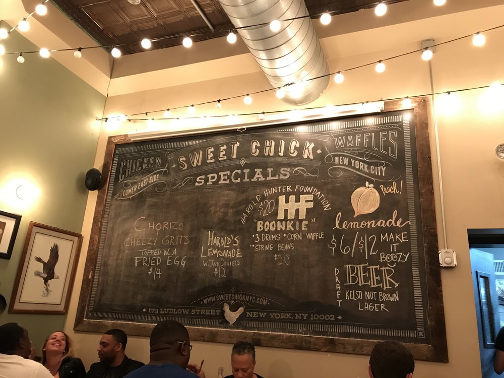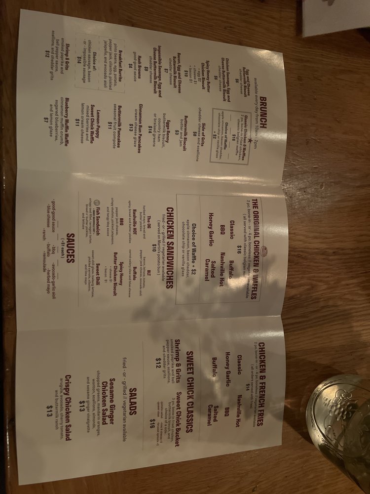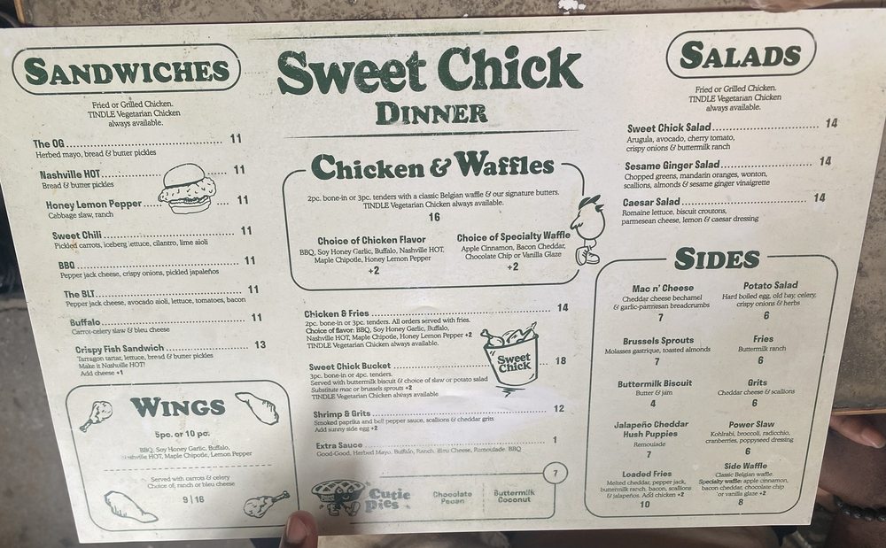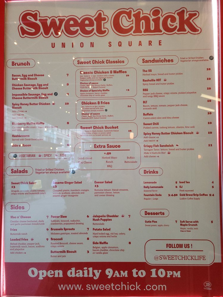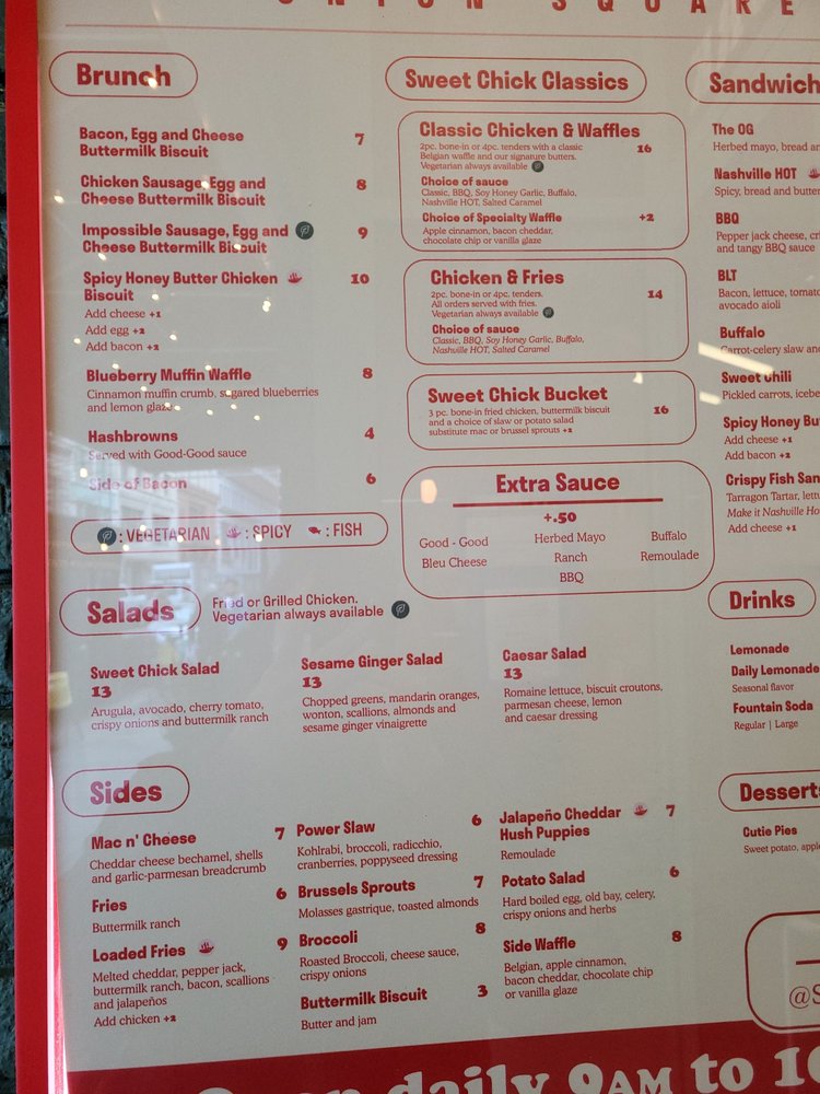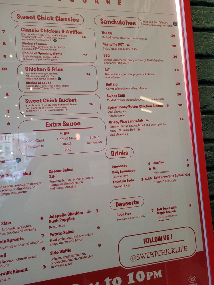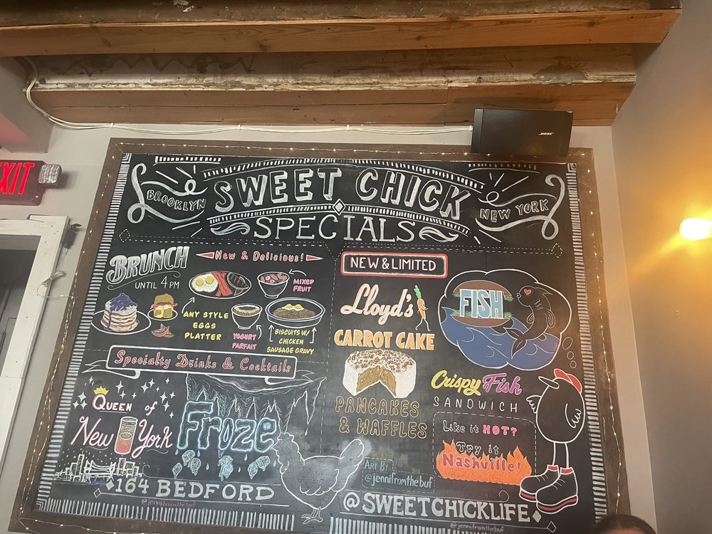Sweet Chick in New York offers a diverse menu with options such as Fried Chicken Sandwiches, Bone-In Chicken & Waffles, and Chicken Tenders & Waffles. The restaurant provides amenities like Takeout, Reservations, and Vegan Options, making it suitable for various dietary preferences. Customers praise the friendly customer service and the inviting ambiance, with some recommending the chicken and waffles as standout dishes. One customer particularly enjoyed the Buffalo Chicken Sandwich for its blend of flavors, while another found comfort in the crispy fried chicken and flavorful waffles. The restaurant's hip and casual vibe, along with quick service and good music, contribute to a pleasant dining experience. Overall, Sweet Chick is a great choice for those seeking a tasty and satisfying meal in a welcoming setting.